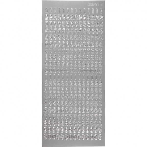 Stickers, vel 10x23 cm, zilver, cijfers, 1vel [HOB-170221]