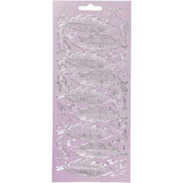 Stickers, vel 10x23 cm, zilver, perlemor pink, veren, 1vel [HOB-170192]