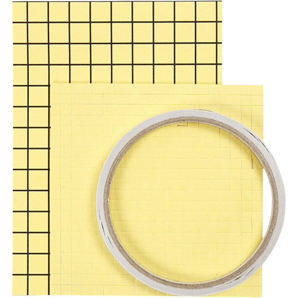 Inhoud: 5 m dubbelzijdig tape (b: 6 mm), 1 vel à 400 stuks 3D foam pads (5x5x2mm), 3 vellen dubbelzijdig folie (10x14 cm).