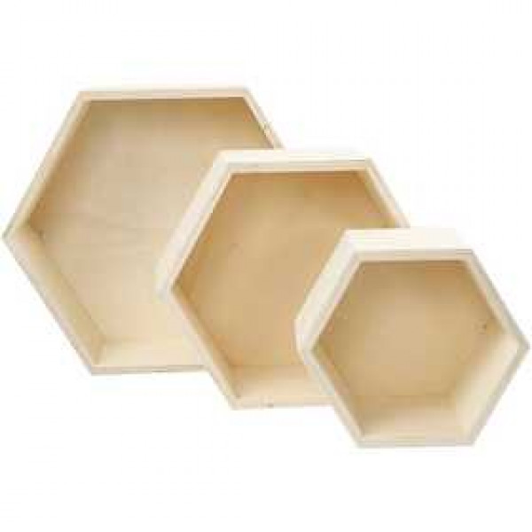 Showdozen, hexagonaal, h: 14,8+19+24,2 cm, diepte 10 cm, triplex, 3stuks [HOB-56430]