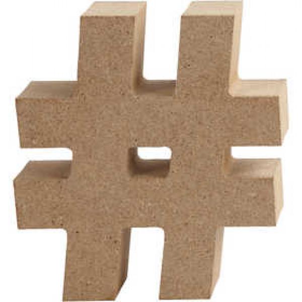 Symbool van MDF, #, h: 8 cm, dikte 1,5 cm, MDF, 1stuk [HOB-56357]