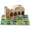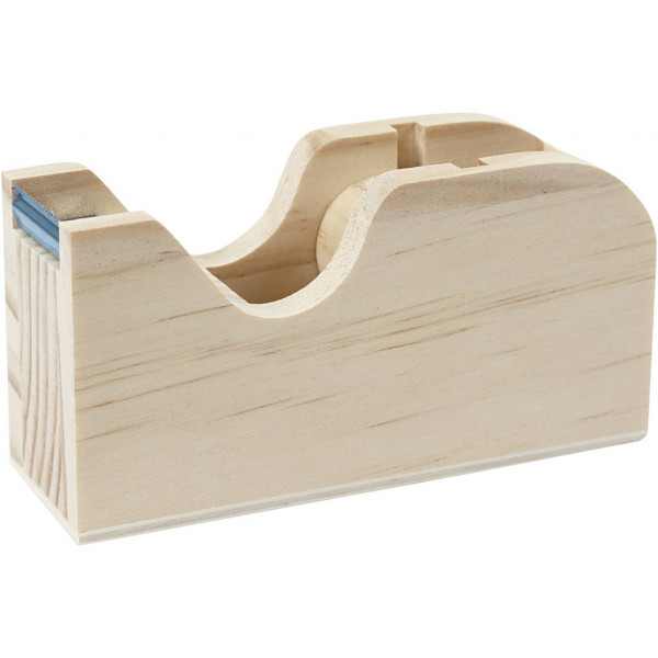 Plakbandhouder van licht hout voor plakband (max. breedte 2 cm).