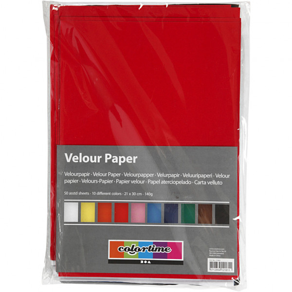 Velour papier, A4 21x30 cm,  140 gr, kleuren assorti, 50vellen [HOB-27069]