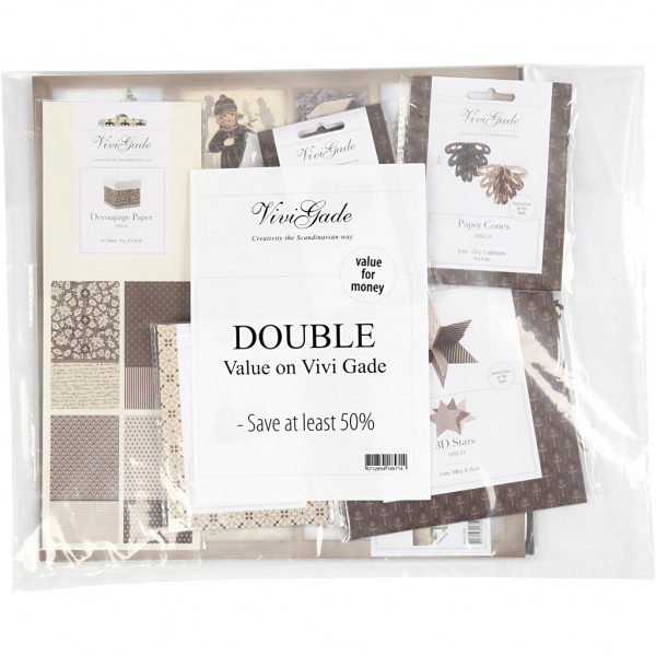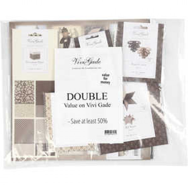 Inhoud kan variëren, maar kan bestaan uit ontwerppapier, decoupagepapier, tassen, tags, ornamenten en dergelijke. U krijgt dubbele inhoud ten opzichte van de normale prijs, u zult altijd ten minste 50% besparen.