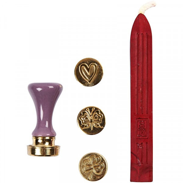 Starterset met handvat, rode lak met een lont, 3 verschillende zegels.
