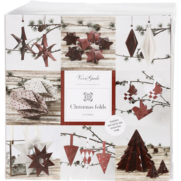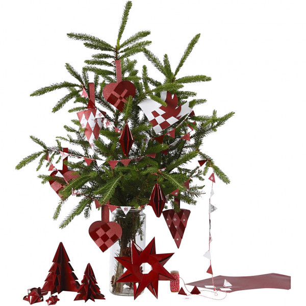 Set design papier van Vivi Gade en instructies voor zowel gevlochten als gevouwen ornamenten.