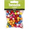 Houten kralen mix, d: 10 mm, gatgrootte 2,5-3 mm, diverse kleuren, 22gr, circa 70 div [HOB-571231]