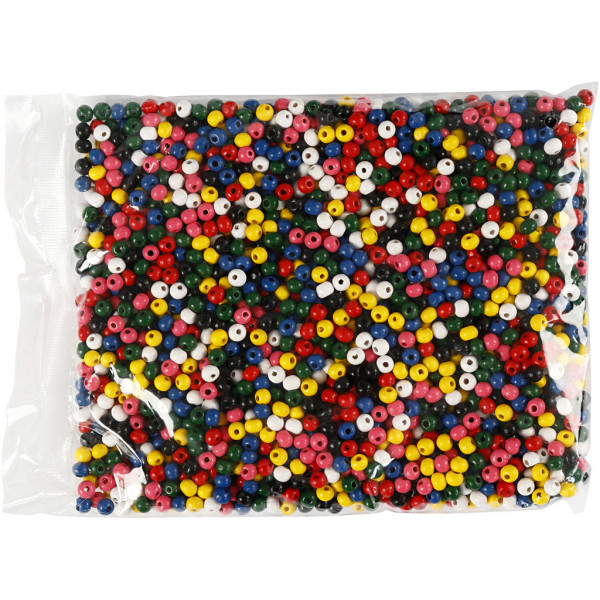 Houten kralen mix, d: 5 mm, gatgrootte 1,5 mm, diverse kleuren, 180gr, circa 3500 div [HOB-57043]