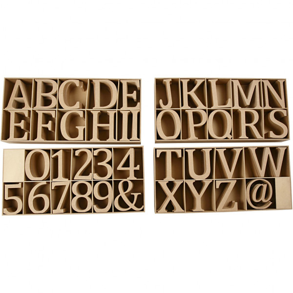 Letter, cijfers en tekens, inclusief display, h: 13 cm, dikte 2 cm, MDF, 160stuks [HOB-56348]