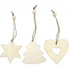 Houten decoraties, hart, ster, kerstboom, afm 6 cm, dikte 3 mm, 9stuks [HOB-56733]