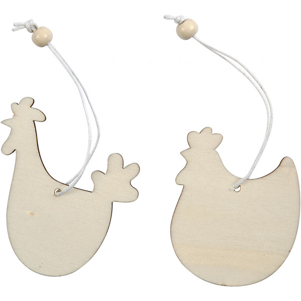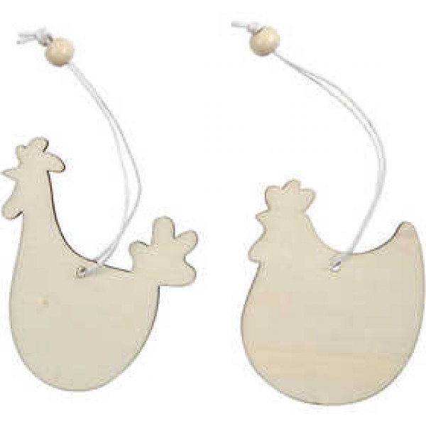 Houten decoraties, kippen, afm 6 cm, dikte 3 mm, 12stuks [HOB-56230]