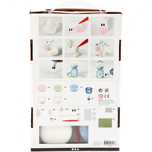 Inhoud: Foam Clay en Silk Clay in diverse kleuren voor unicorns, cakes en regenboog. Bovendien ook, metallickleurig chenille, glitter sterren, EVA foam met glitter.