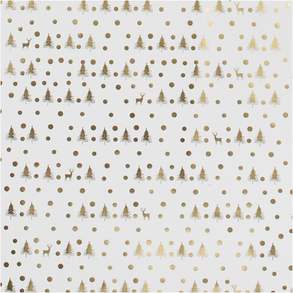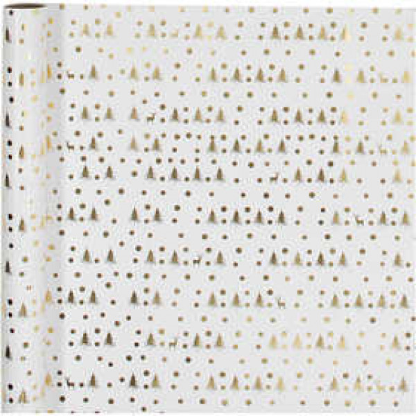 Cadeaupapier, b: 57 cm,  80 gr, wit, goud, kerstboom met rendier, 75m [HOB-19046]
