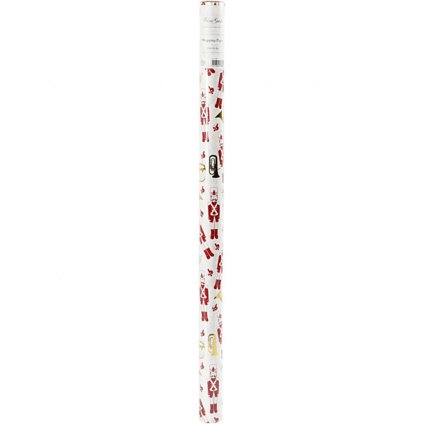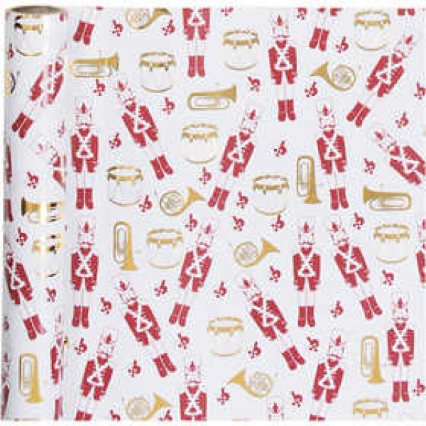 Cadeaupapier, b: 70 cm, 80 gr, wit, goud, rood, notenkraker, 2m [HOB-191800]